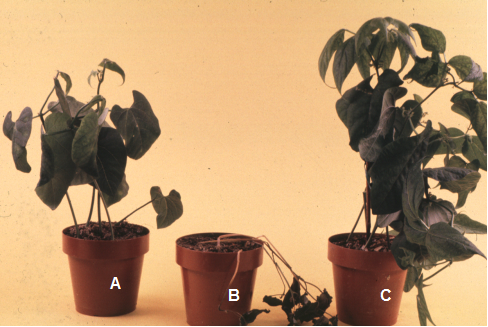 Non-glyphosate-tolerant plants that are sprayed with glyphosate die due to secondary “infections” caused by pathogenic organisms. These plants are stressed by the chelation and tying up of nutrients and then exposed to increased concentration of pathogenic organismsconcurrent with a decrease in the beneficial organisms. Natural defense mechanisms shut down and disease kills the plant or weed.