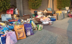 This is the entry to the Chico Airport terminal, with tables full of donated food and treats available for the animals we cared for, and for people in need.